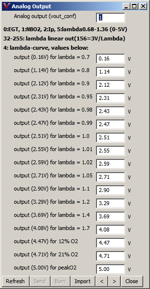 vout_conf=4 is the fully configurable lambda output. In this case, 17 points (lambda => voltage) determine the output curve. Interpolation is applied between points.