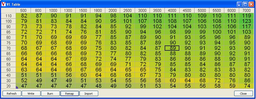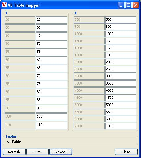 Firmware 1.1.49 and above have separate header values(bins) for each tables so that from this version it will modify only one table while in older firmware version remapper remap all tables. The mappers shows the affected tables in the bottom left corner which configured in the appropriate vemsTune-*ini file.