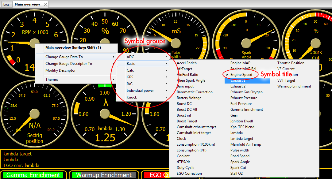 The "symbol descriptor" describes for the VemsTune the real-time value of the symbol.